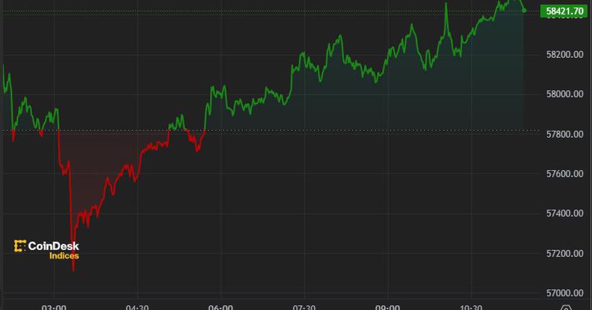 Bitcoin (BTC) held its $58,000 price level throughout the European morning before a U.S. inflation report due at 8:30 ET (12:30 UTC). Following a dip toward $57,000 at about 3:30 UTC, BTC is sitting around $58,400 at the time of writing, down 0.34% in the last 24 hours. The CoinDesk 20 Index, which offers a measurement of the broader digital asset market, has risen around 0.2%, suggesting traders are sitting on their hands waiting for the CPI report, which will offer the latest indication on the prospect of a cut to interest rates.