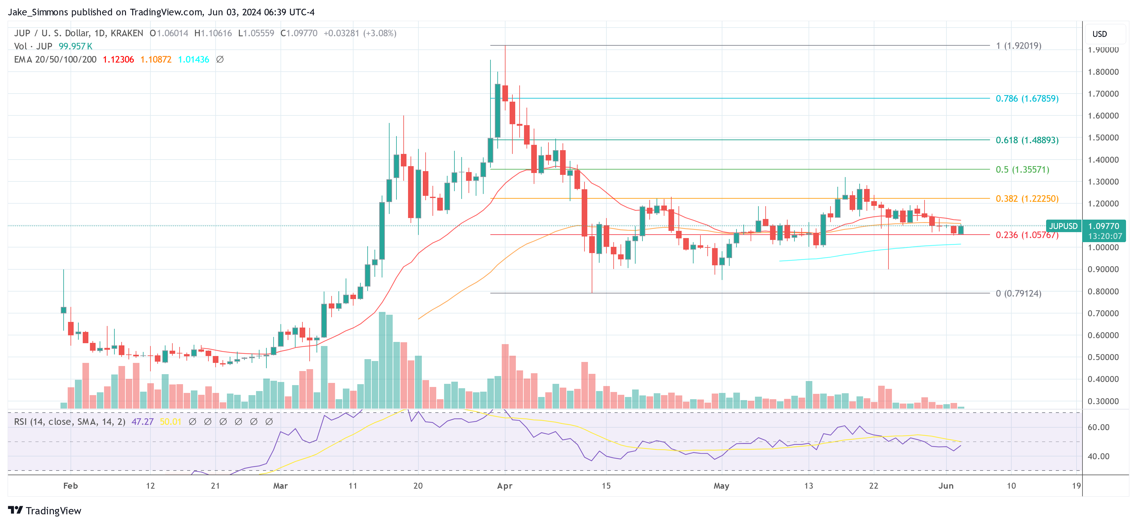 Davis detailed Jupiter’s significant trading volumes, noting that it frequently surpasses Uniswap. In March and April, Jupiter achieved $47 billion and $35 billion in trading volume, respectively. He highlighted Jupiter’s perpetual exchange feature, which offers up to 100x leverage, as a significant attraction for traders seeking substantial gains. Moreover, Jupiter’s staking rewards model incentivizes participation in project governance, providing stakeholders with additional benefits such as incentivized tokens, launchpad fees, and airdrops. Davis mentioned Jupiter’s plans to expand into the forex and stock markets, which could further enhance its utility and market position.