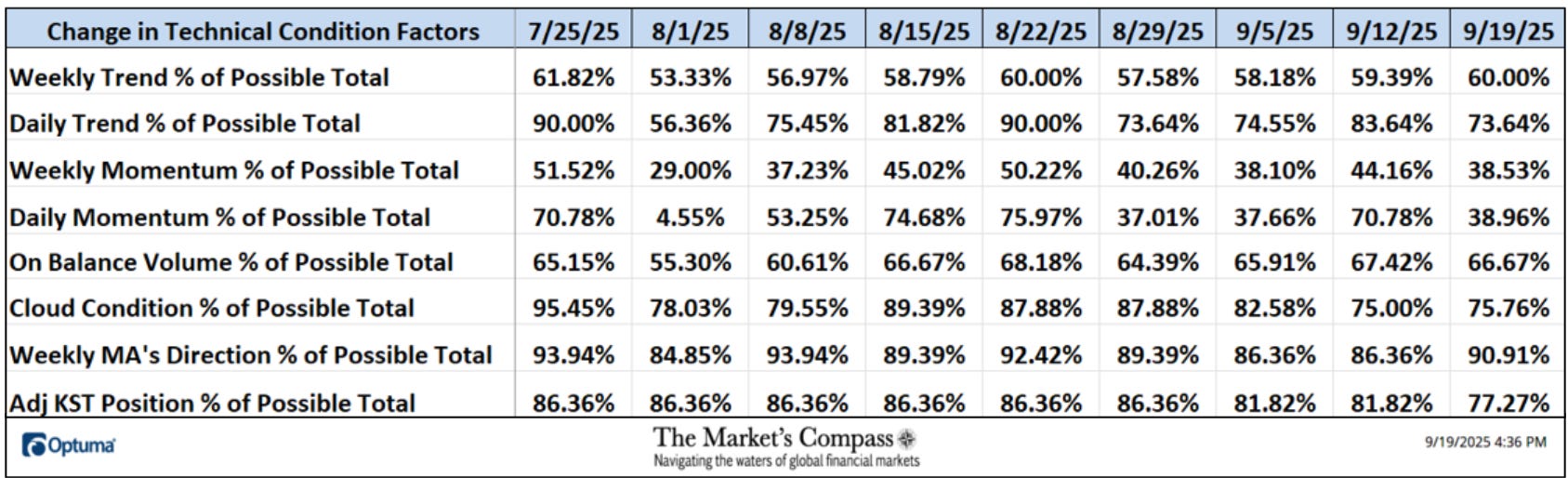 The Daily Momentum Technical Condition Factor (“DMTCF”) fell to 38.96% last week from a 70.78% reading the previous week.